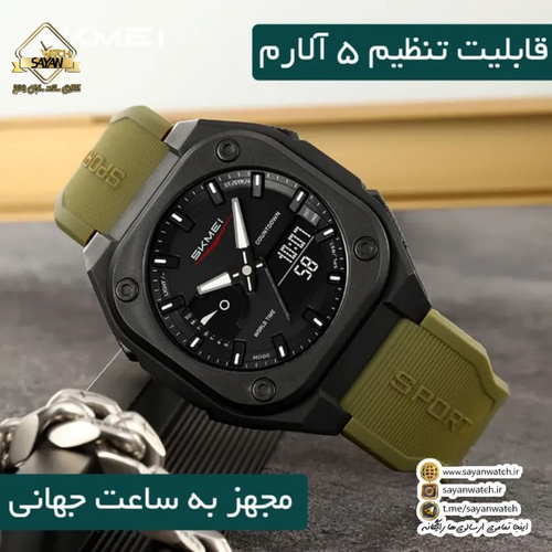 ساعت مچی اسکمی مردانه مدل 2328 | کرنوگراف ، ساعت جهانی ، 4 آلارم و کانتر حرفهای اورجینال با صفحه دیجیتال چندکاره پیشرفته، انتخابی ایدهآل برای افراد فعال، گردشگران و علاقهمندان به تکنولوژی است. این ساعت با 12 عملکرد حرفهای شامل ساعت جهانی، کرنوگراف، 4 زنگ هشدار، تایمر شمارش معکوس، نور پسزمینه LED و مقاومت در برابر آب تا 50 متر، یک همراه کامل برای هر موقعیتی است. طراحی مقاوم با بدنه ABS، بند TPU انعطافپذیر و ضدضربه بودن آن را برای ورزش و طبیعتگردی ایدهآل میسازد. بنابراین برای خرید این محصول با گارانتی اصالت کالا و قیمت استثنایی، همین حالا از گالری ساعت سایان واچ اقدام کرده و خریدی مطمئن و هوشمندانه را تجربه نمایید.